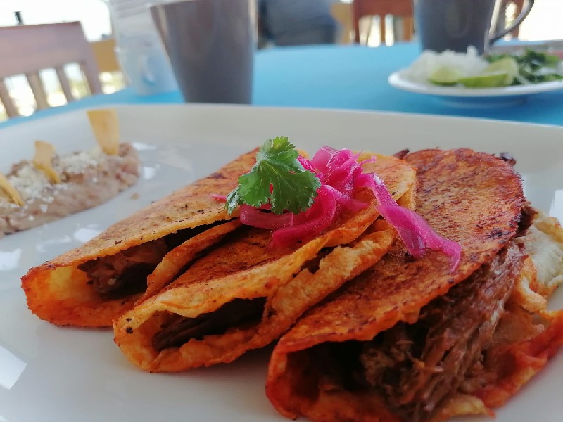 También destacan los tacos de marlin ahumado, con tortilla hecha a mano y salsa de la casa, y los ceviches al estilo Yucatán, con ese toque cítrico que te transporta directo a la playa. Para acompañar, te recomendamos una michelada artesanal o un cóctel con mezcal.